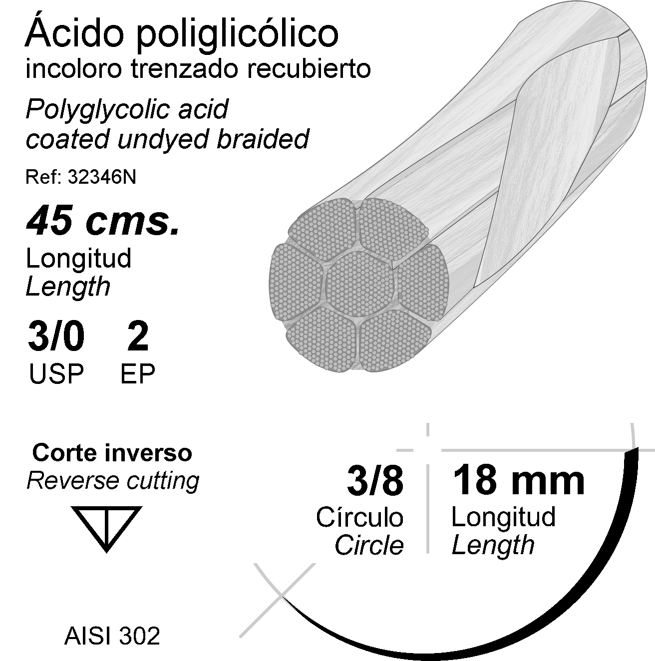ACIDO POLIGLICOLICO (SSA 90) 3/0, INCOL. 45CM 1AG. 3/8CIRC. TRIANG. 18MM (TB-15)